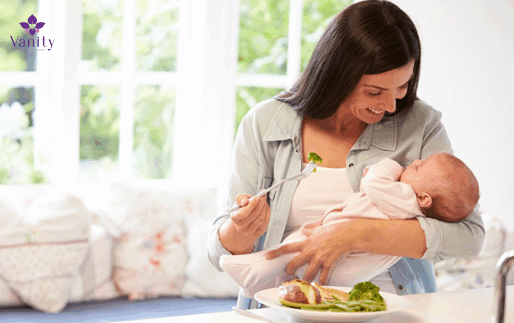 Ăn đủ bữa, đúng giờ và uống nhiều nước cũng là những thói quen cần duy trì. Điều này giúp cơ thể chuyển hóa tốt hơn và đảm bảo lượng sữa ổn định cho em bé. Bên cạnh đó, việc ăn chậm, nhai kỹ và tránh ăn khuya cũng góp phần hỗ trợ tiêu hóa và kiểm soát cân nặng hiệu quả hơn. Một lưu ý quan trọng là tránh ăn kiêng quá mức vì có thể ảnh hưởng đến nguồn sữa. Thay vào đó, hãy chọn cách ăn uống thông minh, cân bằng và linh hoạt theo từng giai đoạn hồi phục.